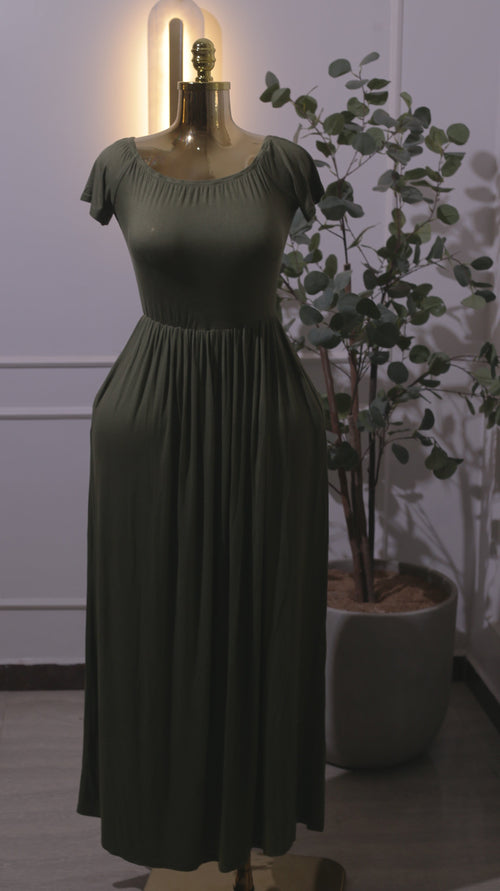 Army Green Empire Waist Maxi Dress